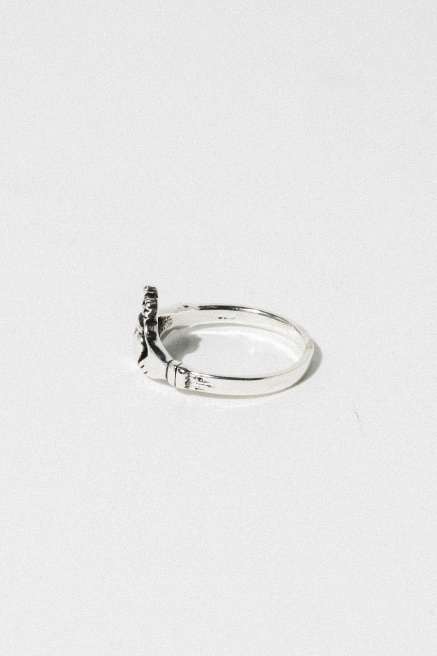 Claddagh Rings have been associated with love in Irish culture since the 17th century. The two hands represent friendship, a heart symbolizes love and the crown on top is for loyalty. The ring is traditionally worn on different fingers or hands, depending on status.