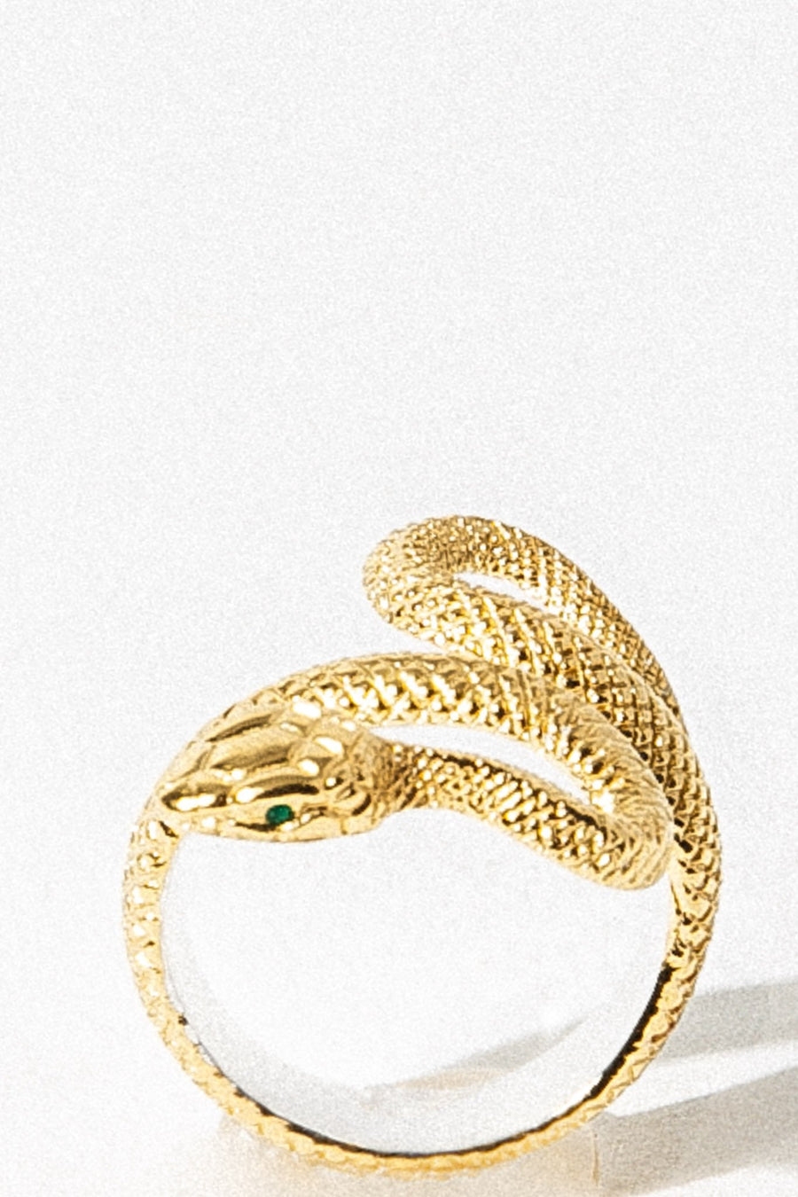 Ancient serpent ring adorned with two authentic emerald stone eyes encouraging growth, reflection, and peace. Serpents and snakes have always played an integral role in religion, mythology, and literature. The serpent’s shedding of its skin is very symbolic of rebirth, transformation, immortality, and healing within our lives. The serpent ring calls on the inner wisdom of its wearer; reminding them with each new day that we’re given the opportunity to rebirth into the best versions of ourselves.