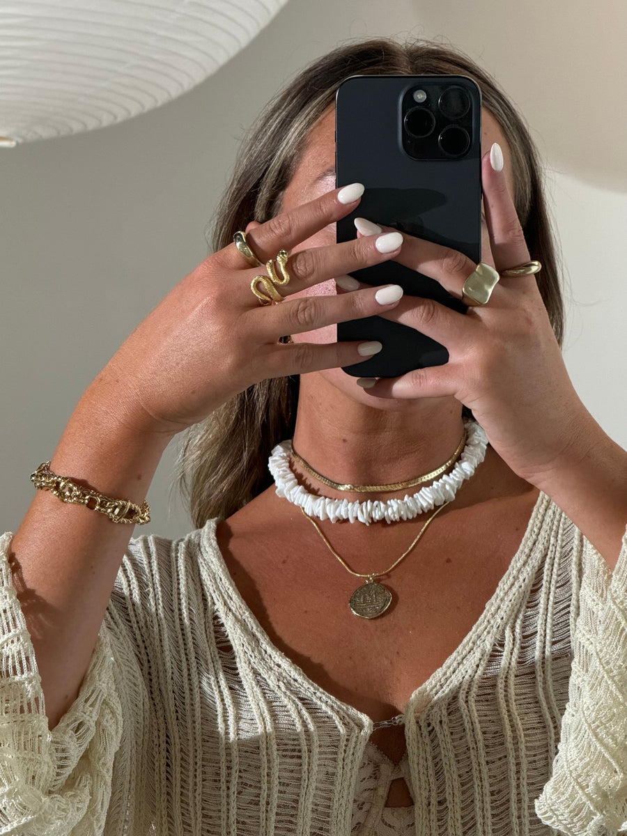 1. Thou Shalt bathe bare: Late Night swims & skinny dips are for you, not your jewels.__________ 2. Thou Shalt mind the chemistry: Precious metals & porous gems (such as turquoise) shalt not vibe with ammonia, chlorine, & other chemical solvents found in cleaners, perfumes, & Lotions. __________ 3. Thou Shalt Buff with Love: Polish with a 100% cotton cloth or a special jewelry cleaning cloth. __________ 4. Thou shalt put an X on the O: always keep your gems in a closed box or baggy to prevent oxidation and tarnishing. __________ 5. Thou shalt be easy, baby: vintage and hand-made gems are fragile. please wear with care.