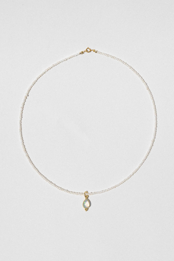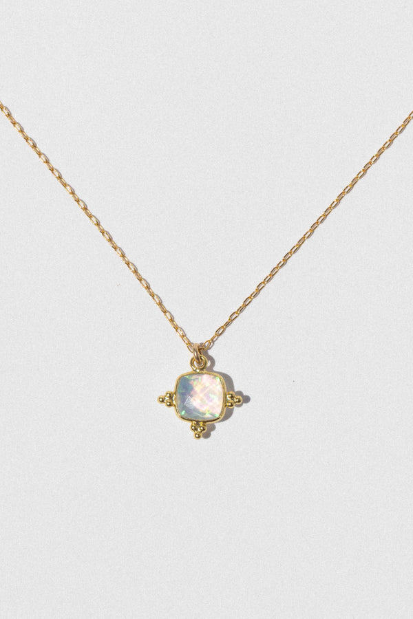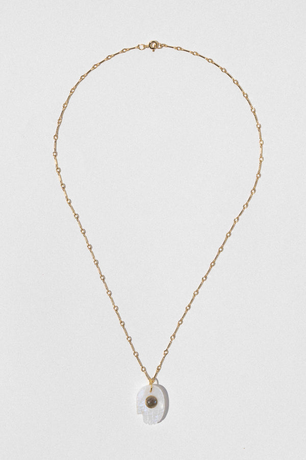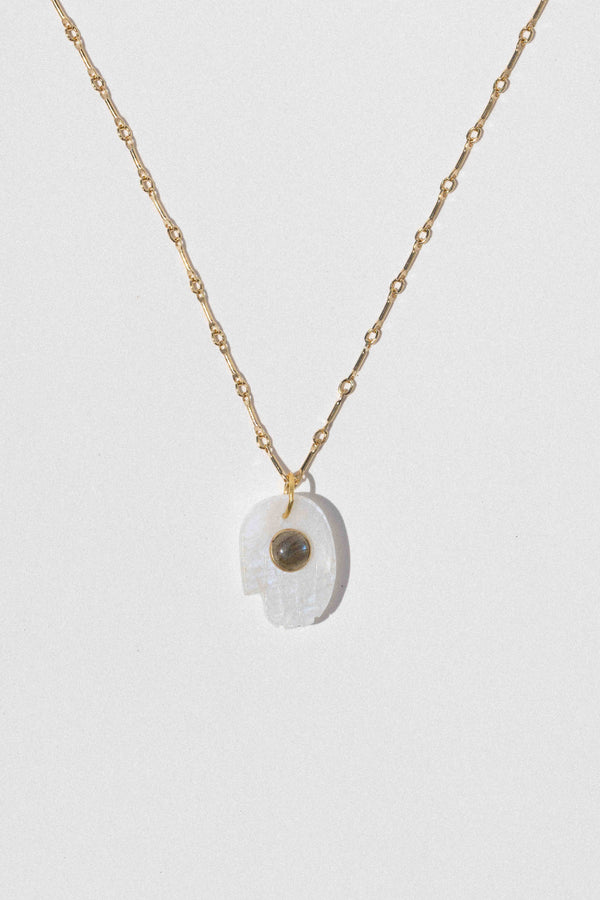 Luminous Hamsa Moonstone + Labradorite Necklace