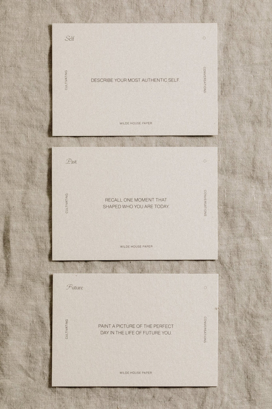 Inspired by the connection that comes from letting down walls and diving deeper, the Cultivating Conversations Card Deck is an innovative way to tap into new realms of discovery. Designed to be used solo or with others, these cards focus in on seven key realms of life to assist in tapping into new areas of reflection and growth. With casual use intended, draw a card to inspire a fresh journaling session or play with a friend to learn something new about yourself and others in your circle.